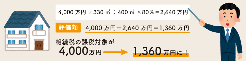 宅地の面積すべてに特例が適用できなかったとしても、大幅な節税効果が期待できることがわかります。